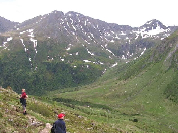 Ende der Wanderung am Schneefeld. Im Hintergrund die Seifriedsenke.